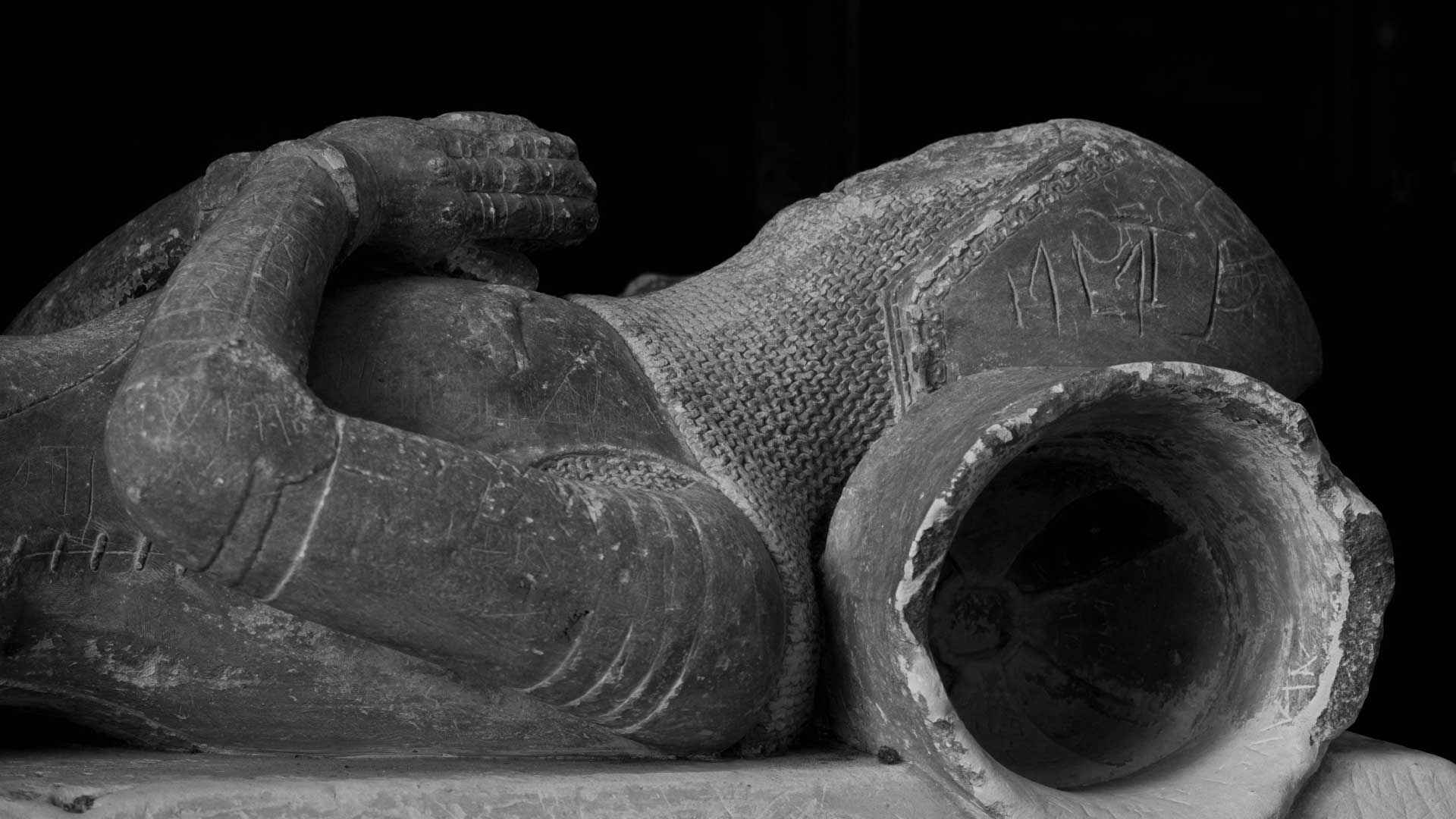 These crests offer clues, but have caused controversy for historians. For centuries, this was believed to be the tomb of Richard and Margaret Torrington, a wealthy Berkhamsted family who probably funded structural additions to St Peter’s Church in the early 14th century. The 17th-century antiquarians Henry Chauncy and John Weever were both convinced of the tomb’s Torrington provenance; the Victorian historian John Wolstenholme Cobb surmised that it might be a son of the Torrigintons; and, writing in 1923, historian Richard Norris referred to this tomb as “the Torrington or Incent Tomb”. Fifty years later, the accepted wisdom had changed, and historian Percy Birtchnell stated that this was the tomb of Henry of Berkhamsted.